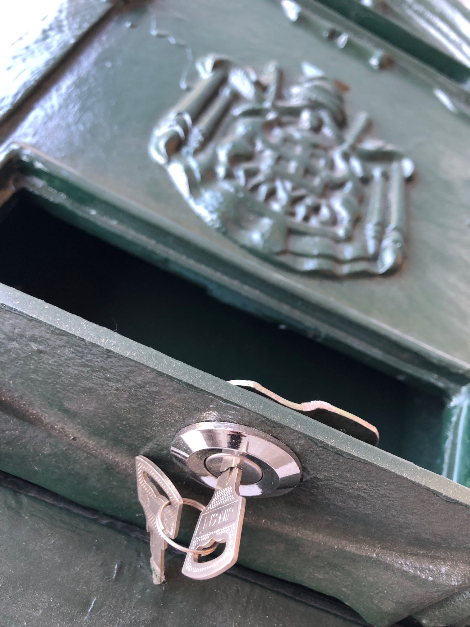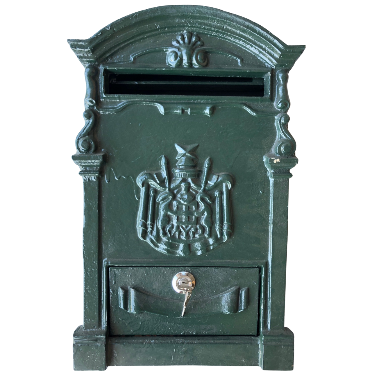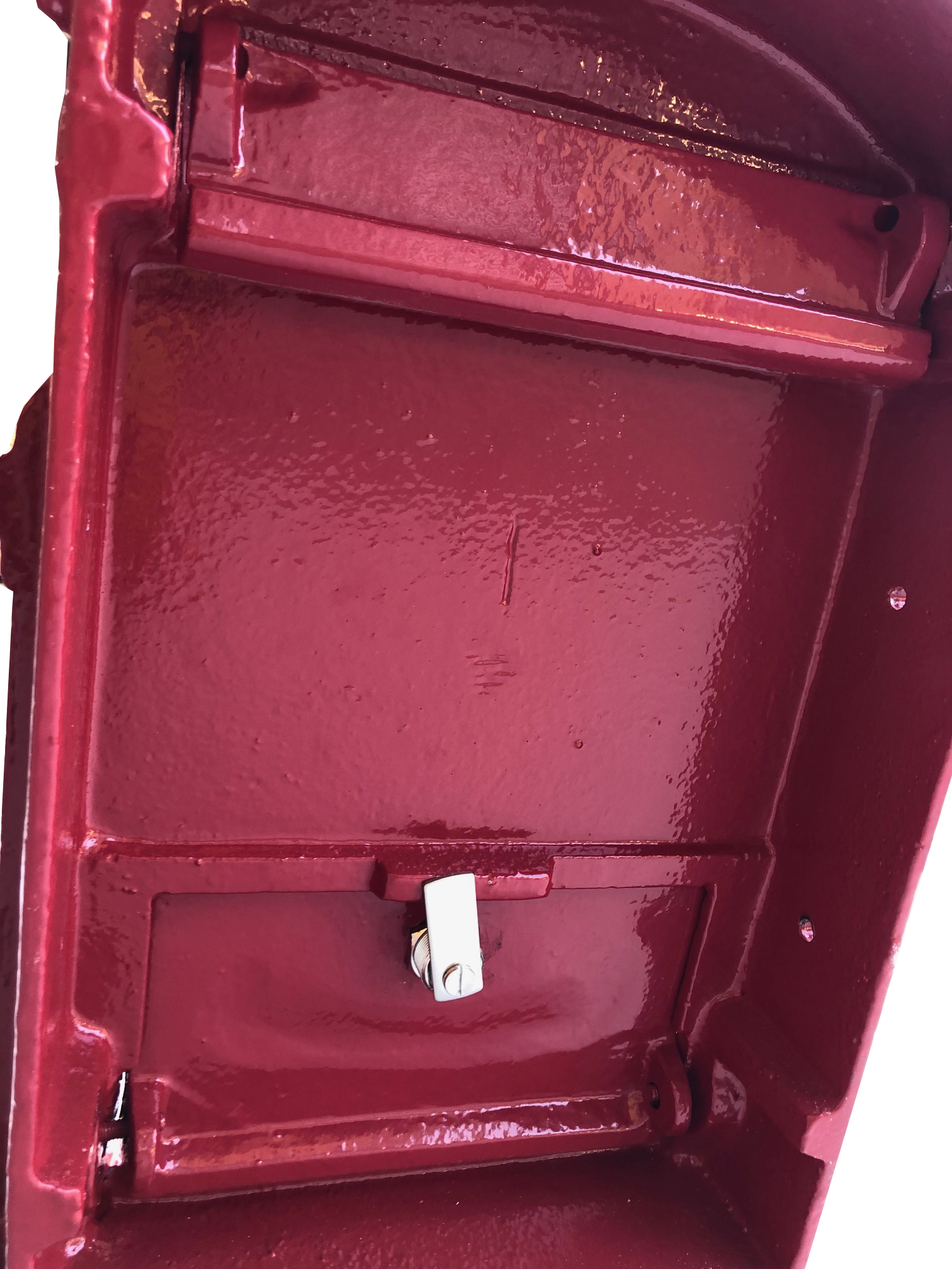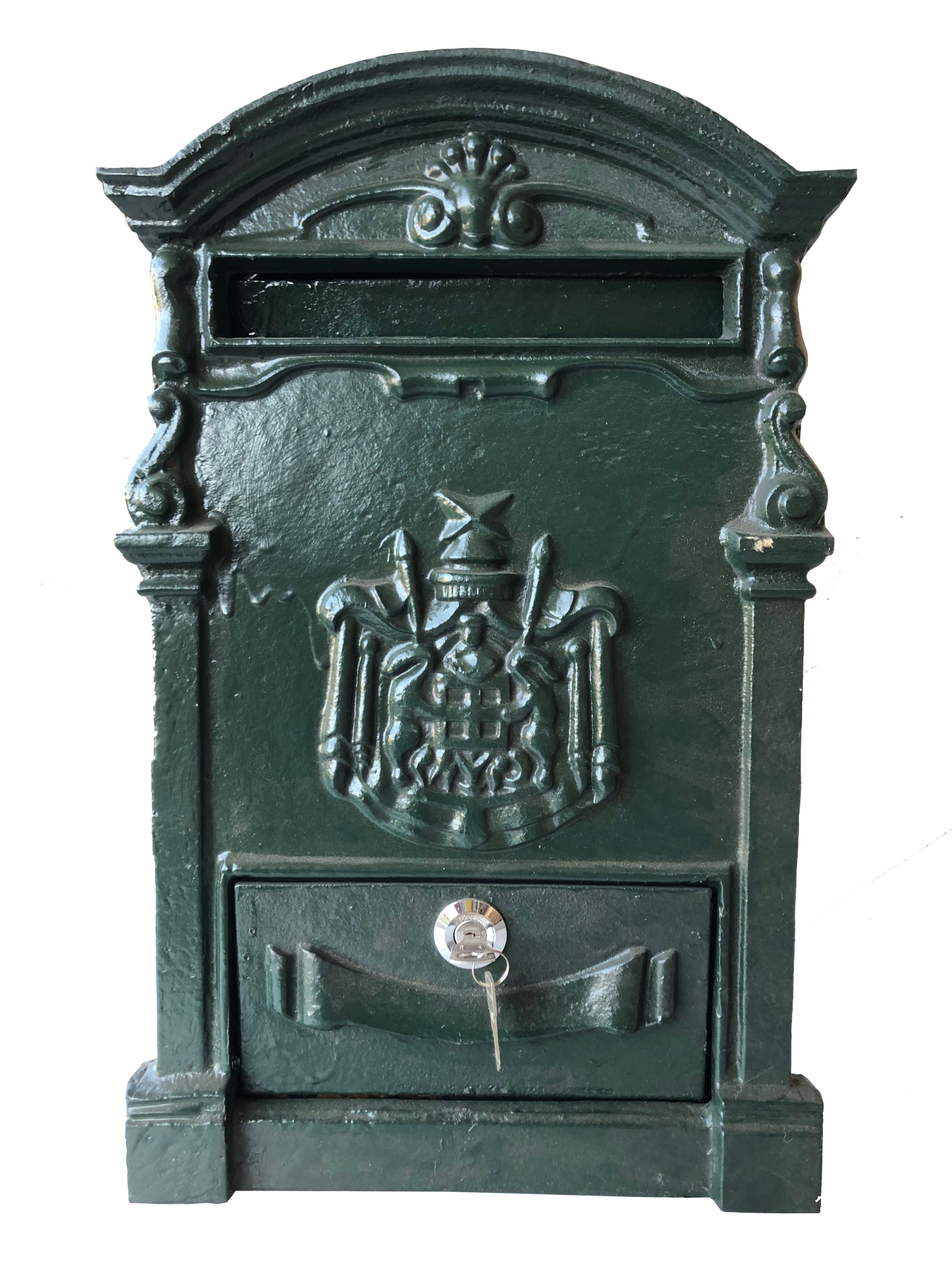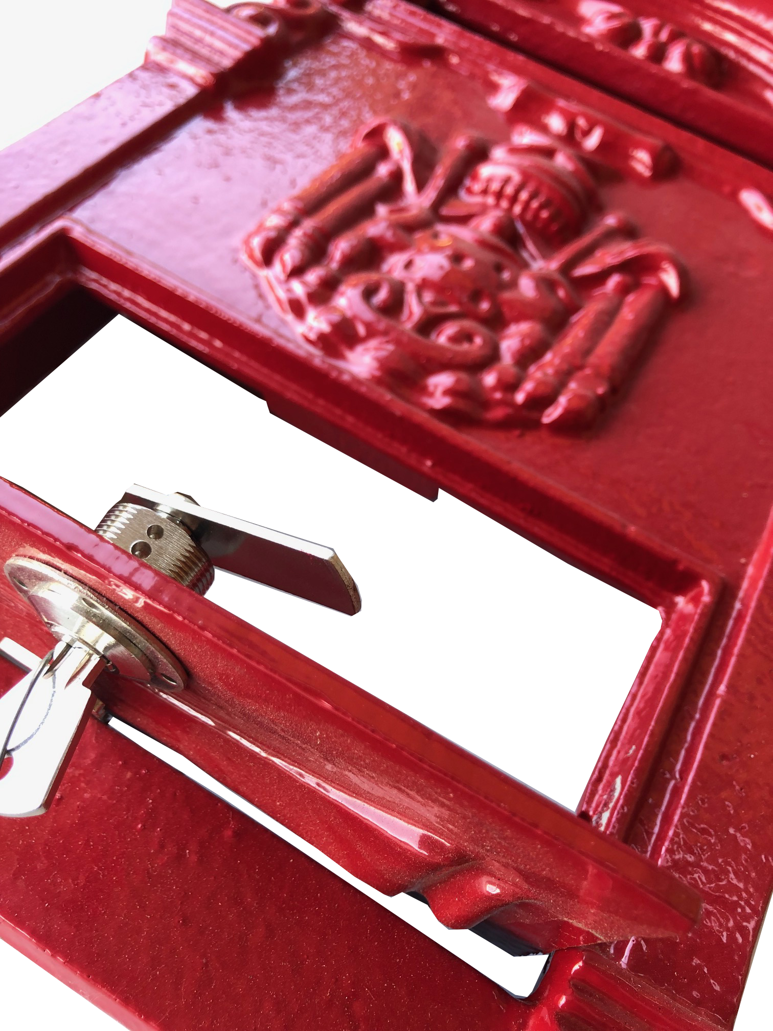 Cassetta postale in ghisa grigia lamellare, senza fondo ma con spalla laterale che permette il perfetto incasso al muro; il ritiro della posta avviene attraverso un’apertura anteriore o raccogliendola direttamente da dietro.
